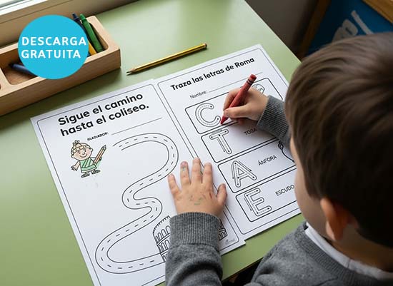 Este paquete gratuito de 5 fichas educativas imprimibles sobre la Antigua Roma han sido diseñadas para niños de preescolar (4-5 años). Cada actividad combina diversión y aprendizaje: