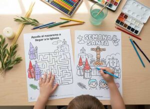 - Sigue las líneas hasta el Coliseo: actividad tipo laberinto para mejorar concentración y control del lápiz.